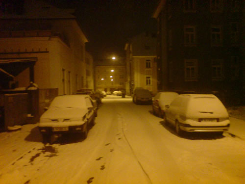 Die Schritte verstummen im Knirschen des Schnees. Man hetzt hastig durch die engen Gassen, es ist verdammt kalt geworden. Der Kaffee aus dem Plastikbecher schmeckt mehr nach Wasser als nach Pulver. Der Kaffeedunst im Streit mit dem Zigarettenrauch. Der Nachthimmel ist wieder einmal von den Straßenlampen hell gelb erleuchtet. Natürlich musste es in der Zwischenzeit wieder schneien, muss noch schnell das Auto vom Eis befreien. Toll, wenn die Scheibenwaschanlage eingefroren ist. Noch schnell den Laptop und die Notizen hinten rein und dann weg aus dieser kalten Stadt.